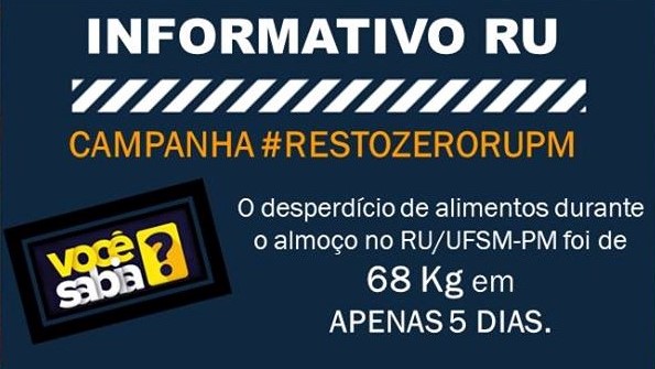 A Campanha Resto Zero RU PM é uma iniciativa da acadêmica de Nutrição Tainara Naszeniak que realiza o Estágio Curricular Prático em Unidades de Alimentação e Nutrição no Restaurante Universitário da UFSM – campus Palmeira das Missões, com a orientação da professora Maritiele Nassinger da Silva e a supervisão da nutricionista Julia Moura.