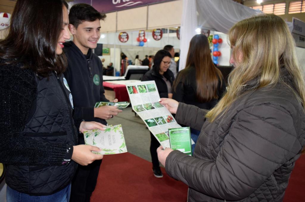 Jussara Maria de Oliveira, técnica de enfermagem da ESF (Estratégia Saúde da Família) Rural Santa Terezinha visitou o estande da UFSM e falou da ideia de, em parceria com a universidade, fazer uma horta medicinal na comunidade que fica no interior de Palmeira das Missões. “As plantas medicinais é um tratamento preventivo e eu acho que a gente tem que ter a medicina preventiva, não só o químico. Como nós, no meio rural, não temos farmácia a primeira opção que temos são as plantas medicinais”, comentou.