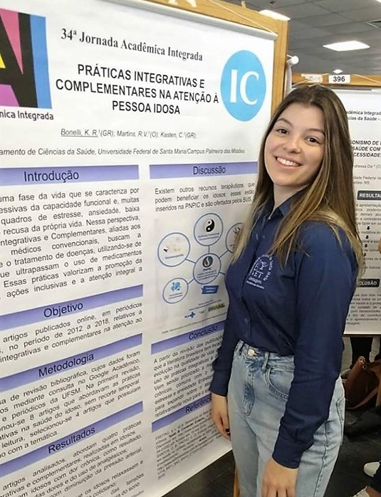 Após as apresentações, os alunos bolsistas premiados na JAI Jovem de 2018 foram convidados a apresentarem um relato de suas experiências, no palco principal do Centro de Convenções da UFSM.