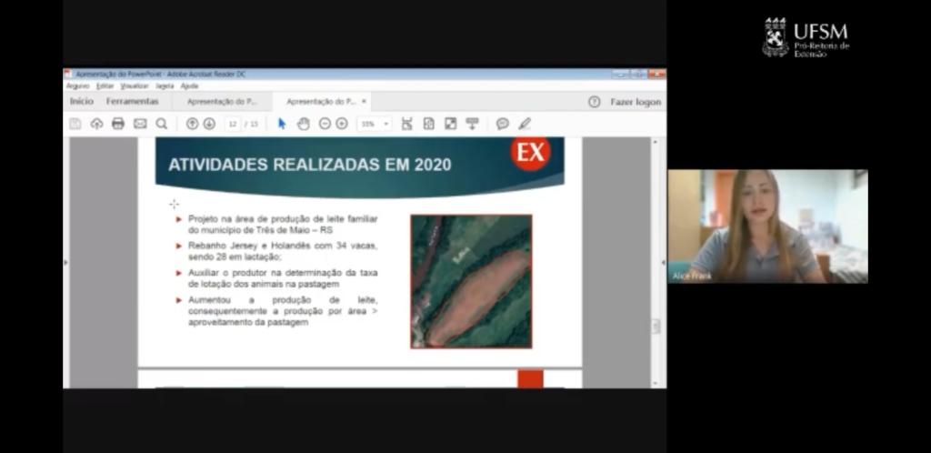Conforme a estudante Aline Frank do curso de Zootecnia, a Zoo Techne Jr., Empresa Júnior coordenada pela professora Rosani Spanevello, tem por objetivo ajudar os alunos a se inserir no mercado de trabalho. “É através de consultorias técnicas que nós conseguimos ter contato com produtos e empresas e conseguimos colocar em prática o conhecimento adquirido em sala de aula”, relatou a estudante. Neste ano, o grupo teve que se readequar, pois não foi possível fazer o contato direto com os produtores e as empresas, assim, passaram a realizar lives técnicas para a área da zootecnia, sobre temas relacionados à formação e live dos estagiários que, agora, já são formados em Zootecnia. Também, auxiliaram um produtor da região na determinação da taxa de lotação dos animais de pastagem. Contato: @zootechne Jr.