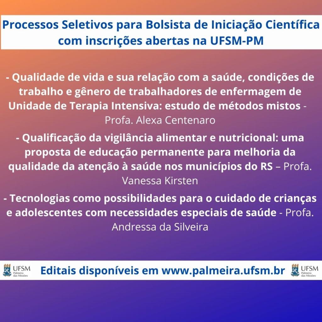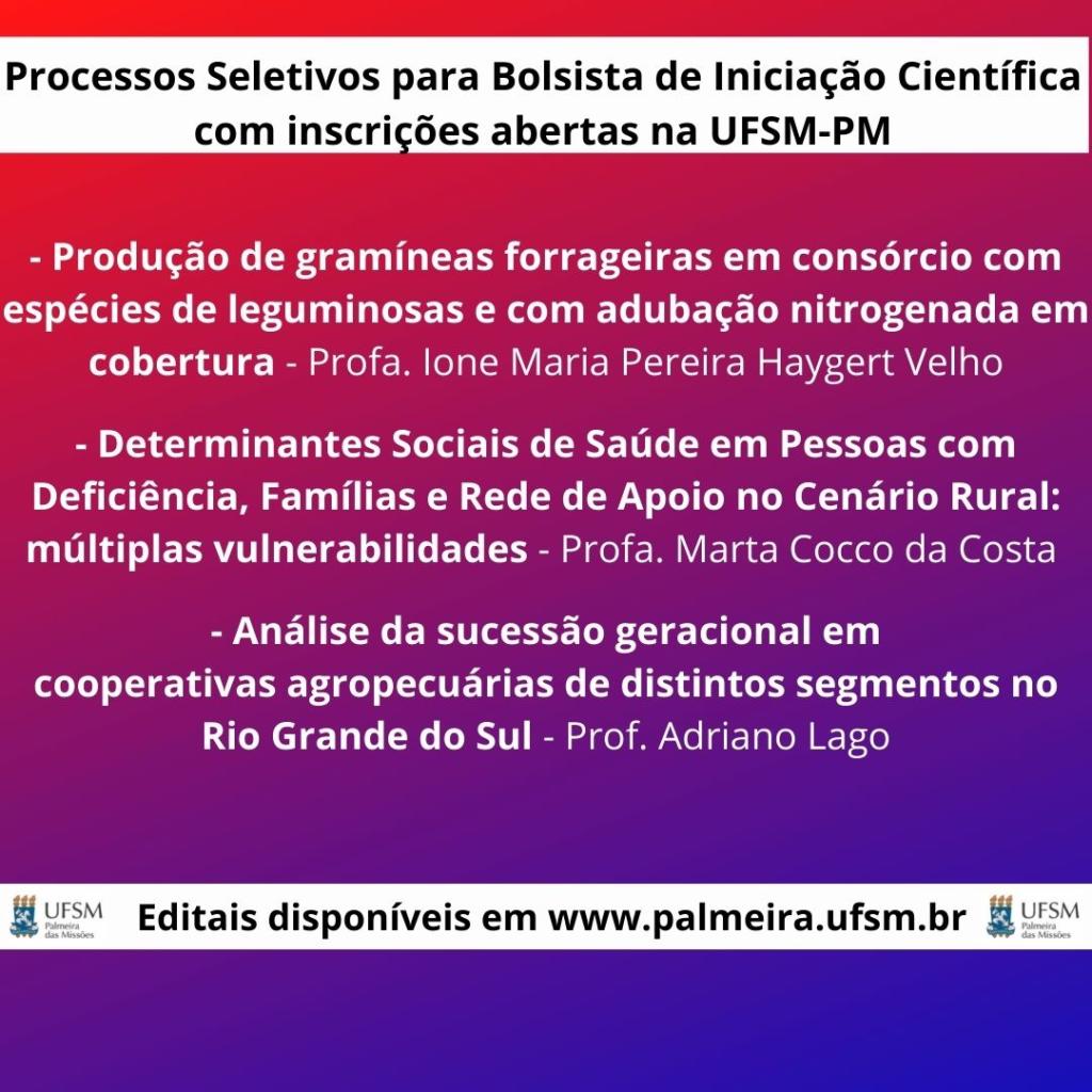 Confira os editais com inscrições abertas para estudantes atuarem como bolsistas na UFSM-PM e fique atento aos prazos de cada edital: