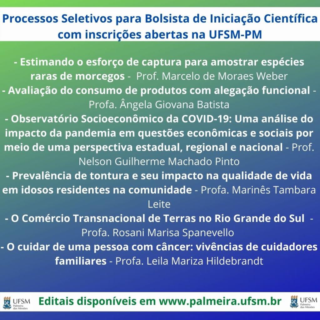 Confira os editais com inscrições abertas para estudantes atuarem como bolsistas na UFSM-PM e fique atento aos prazos de cada edital: