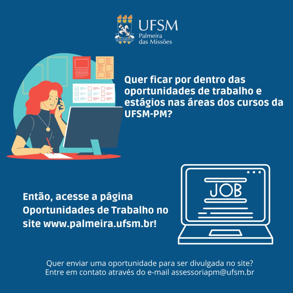 As oportunidades de trabalho podem ser enviadas para o e-mail assessoriapm@ufsm.br.