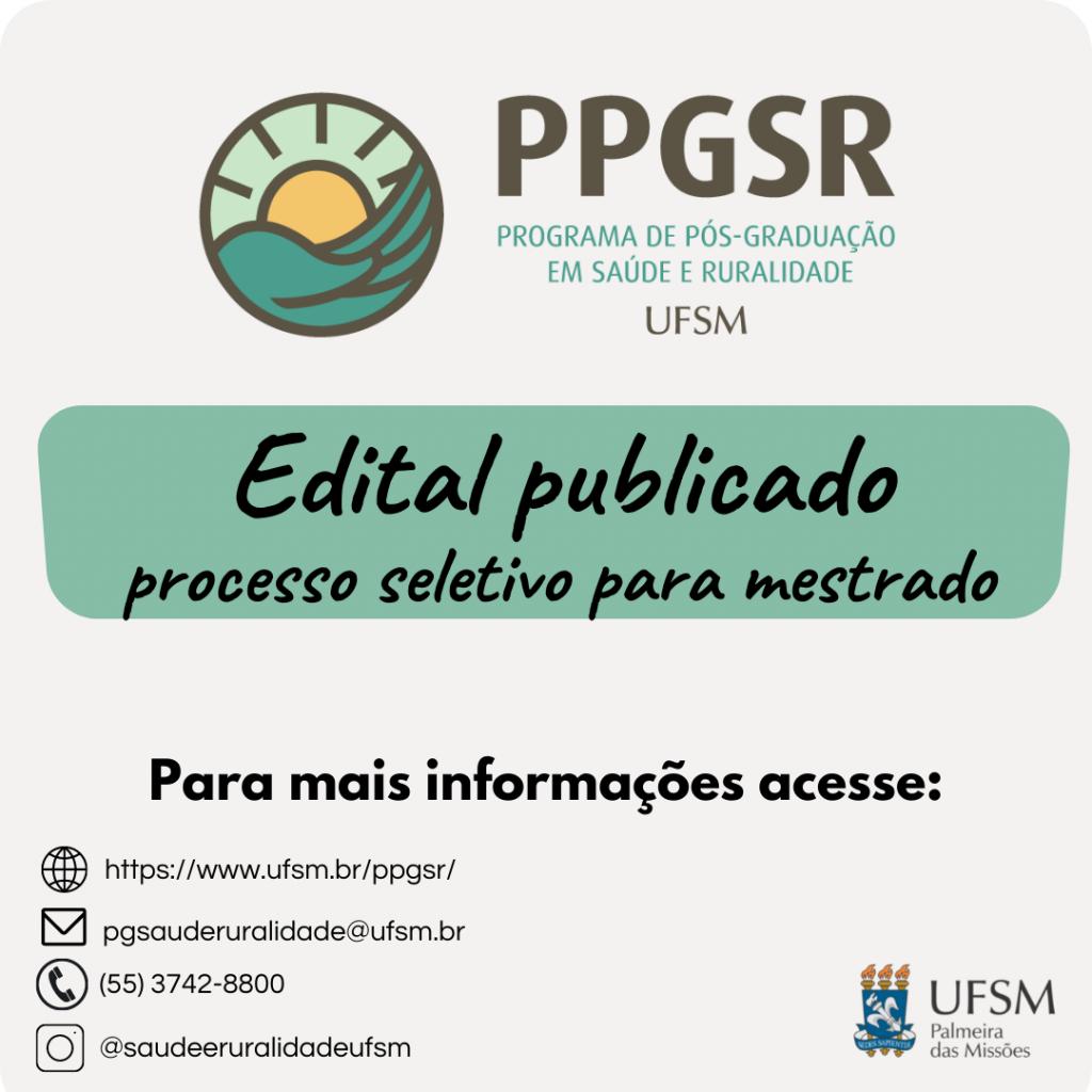 Confira, ainda, as informações referentes ao processo seletivo para o Programa de Pós-Graduação em Saúde e Ruralidade: