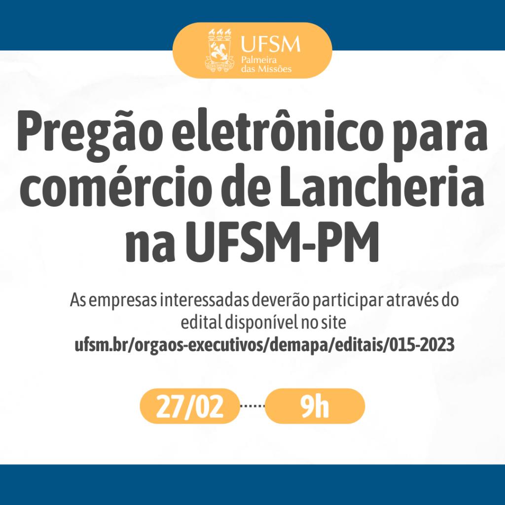 A área é destinada para a exploração de atividade alimentícia, sendo necessária a participação da empresa interessada a partir do edital disponível no link: https://www.ufsm.br/orgaos-executivos/demapa/editais/015-2023 . No edital, podem ser conferidas as exigências para participação e uso da área. O pregão eletrônico acontecerá no dia 27 de fevereiro, às 9h.