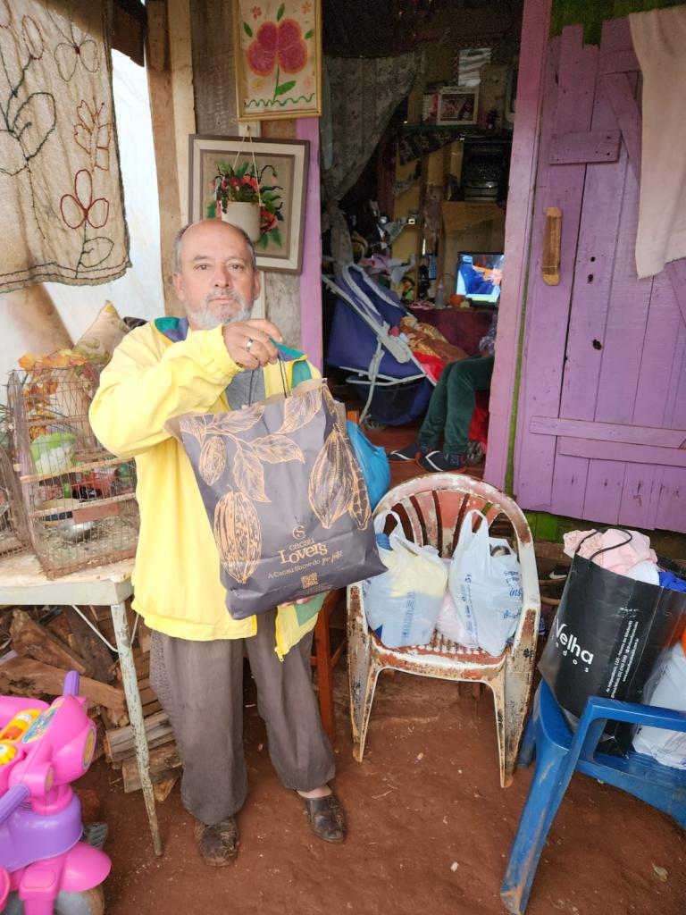 A segunda etapa da campanha contou com a entrega das doações ao Sr. Antônio Elói Machado dos Santos, presidente da Associação de Catadores de Materiais Recicláveis Palmeira Verde, que fez a distribuição entre as famílias que fazem parte da associação.