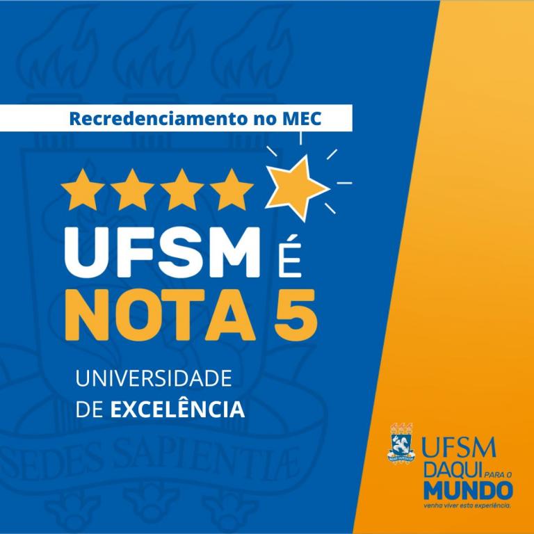 Na quarta-feira 28 de junho, o Ministério da Educação, através do Instituto Nacional de Estudos e Pesquisas Educacionais Anísio Teixeira (INEP), divulgou o resultado do trabalho de recadastramento institucional que vinha sendo realizado na UFSM desde a última semana. Após a análise de documentos, reunião com membros da comunidade acadêmica e visitação online, a Universidade recebeu a nota 5, ou seja, conceito máximo que atesta a excelência da Instituição.
