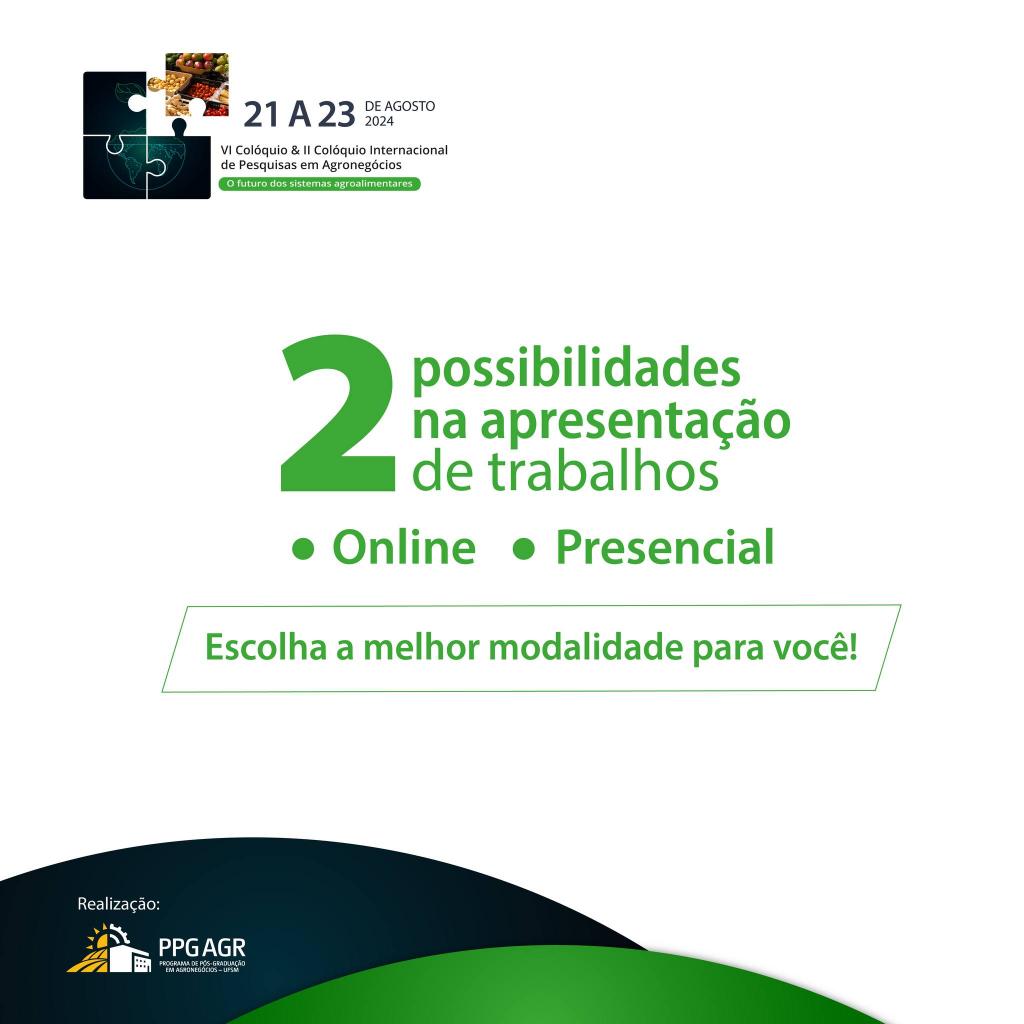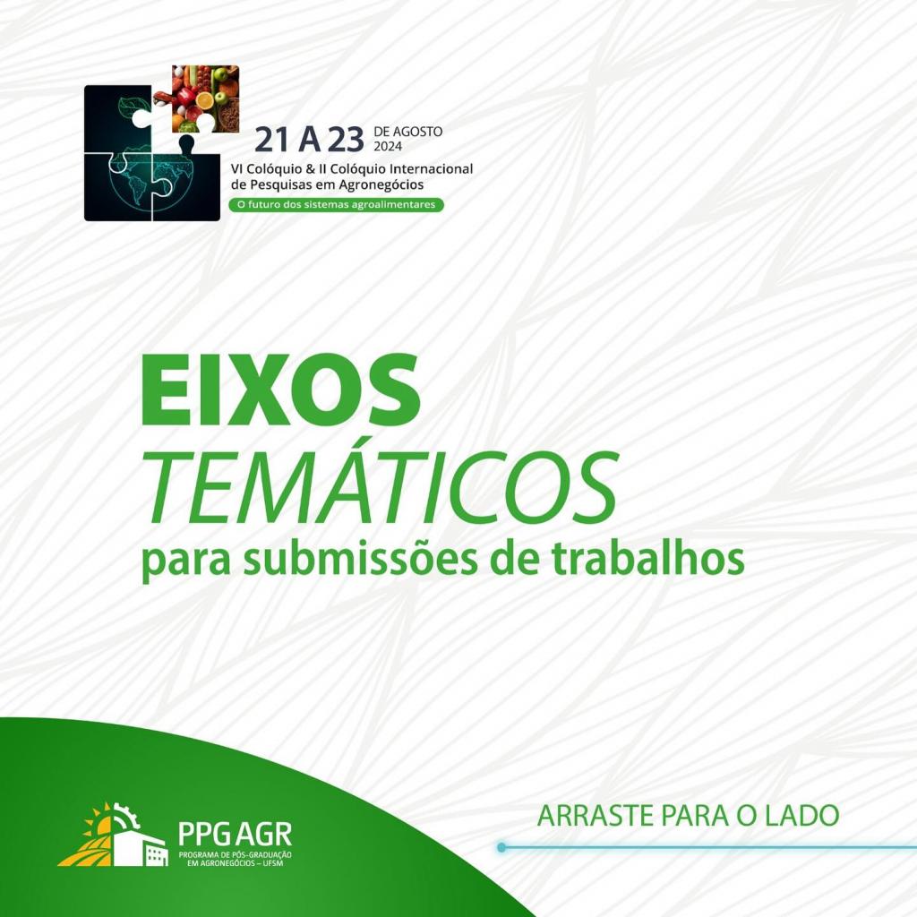 As submissões serão aceitas até 20/07/2024 em dois eixos temáticos: “Arranjos Organizacionais e Competitividade nos Agronegócios” e “Gestão de Sistemas de Produção Agroindustrial”. Os trabalhos aprovados poderão optar por apresentação presencial ou on-line. As inscrições são gratuitas.