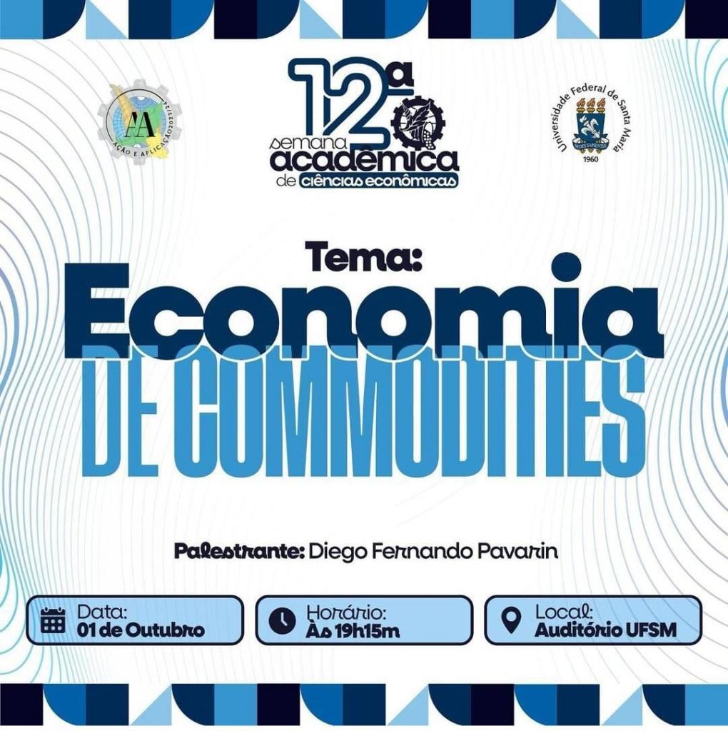 Nesta segunda-feira (30), às 19h, inicia a 12ª Semana Acadêmica do Curso de Ciências Econômicas. O evento será realizado no auditório da UFSM-PM e contará com diversas palestras com temas relacionados à Economia do Crime, Commodities, Economia da Saúde, e Mercado Financeiro. O evento tem como objetivo reunir especialistas na área para debater assuntos relacionados ao mundo econômico, desenvolver habilidades e trocar ideias com profissionais especializados. A programação foi cuidadosamente pensada para trazer ao debate temas que impactam diretamente o mercado e a sociedade.