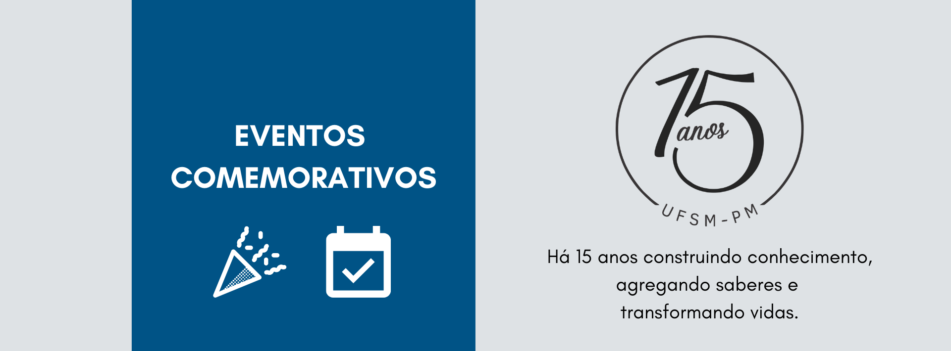 Esta página será atualizada durante o decorrer de outubro de 2021 a outubro de 2022 e reunirá diversas ações de natureza técnica, científica, artística, esportiva e culturais em função das comemorações dos 15 anos da UFSM-PM.