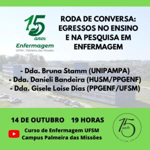 Evento: Roda de Conversa com o tema “Inserção dos Egressos do campus no Ensino e Pesquisa em Enfermagem”.