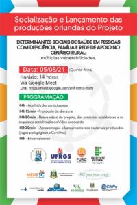 Socialização e lançamento das produções oriundas do Projeto “Determinantes sociais de saúde em pessoas com deficiência, famílias e rede de apoio no cenário rural: múltiplas vulnerabilidades”