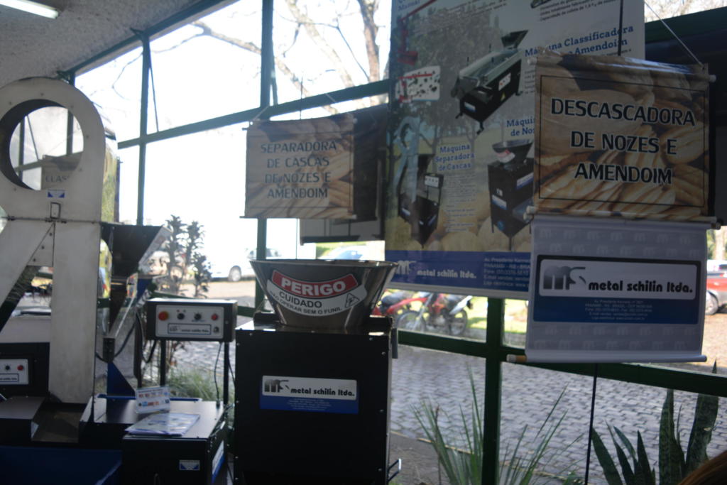 O II Encontro Internacional de Produtores de Noz Pecan contou, ainda, com a exposição de produtos comercializados pela Metal Schilin, empresa de equipamentos para o setor agropecuário, que conta com diferentes máquinas para beneficiamento de nozes em seu catálogo – como descascadoras e separadoras de cascas e polpas com capacidade de 100kg/hora; classificadoras de nozes inteiras ou descascadas em três tamanhos distintos; além de uma linha de varejo para beneficiamento e extração de nozes, que conta com produtos como tesouras de poda, quebradores manuais, coletores de nozes com gancho extrator, alças tiracolo, dentre outros acessórios. Para o representante da Metal Schilin presente na atividade, eventos como o Encontro sempre geram um bom engajamento com produtores, auxiliando, ainda, na consolidação da marca no mercado.