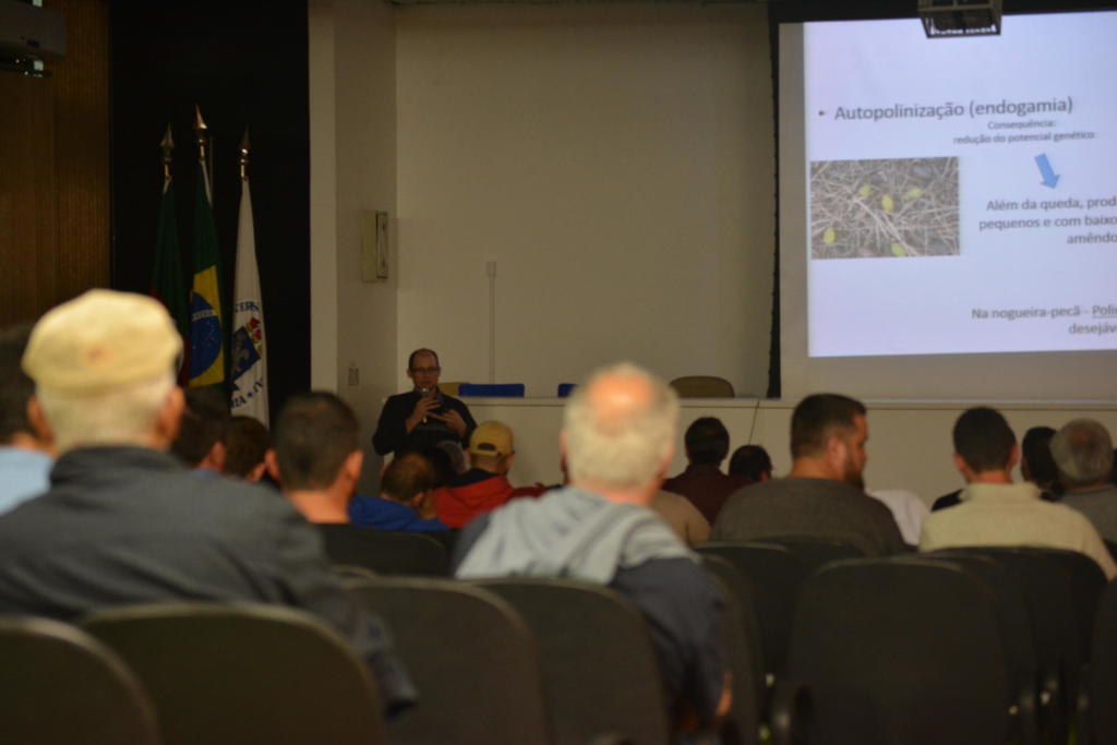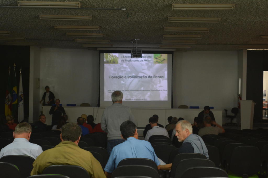 O professor Diniz Fronza, um dos atuantes na organização do evento, destaca que o objetivo do Encontro foi proporcionar melhores resultados e, consequentemente, uma melhor renda aos produtores de noz pecan. Segundo ele, existem mais de mil produtores do fruto na região, dos quais muitos se dedicam ao cultivo da noz há cinco e até dez anos. “Estamos aqui para demonstrar novas tecnologias de poda, adubação e redução da altura de plantas para um aumento da produtividade – ao invés de colher uma tonelada, colher dois mil quilos por hectare – e para melhorar a qualidade da amêndoa – ao invés de ter 45% da amêndoa, ter 55%”, destaca Diniz Fronza.