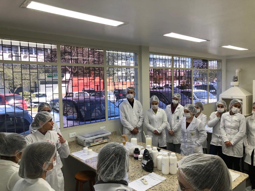 Na ocasião, os alunos tiveram a oportunidade de conhecer a infraestrutura e a rotina de atividades da Farmácia Escola, orientados pela equipe de farmacêuticas Ana Paula Ferreira, Claudia Silveira, Marilia Marchiori e Melina Renz, bem como pelos Técnicos de Laboratórios Diam Celante e Valquiria Bolzan. Confira algumas fotos da visita: