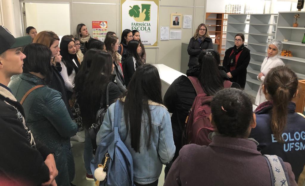 Em 21 de agosto de 2019, os alunos do segundo semestre do curso Técnico em Farmácia realizaram uma visita técnica à Farmácia Escola da UFSM como exercício extra-classe. A atividade é vinculada à disciplina de Farmacotécnica I e foi acompanhada pela Dr. Magda Monego, professora do Colégio Politécnico da UFSM.