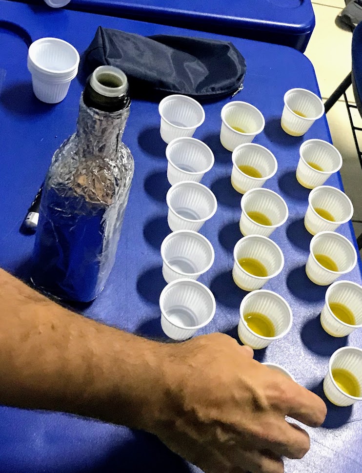 Na sequência da conversa, o grupo pode degustar alguns azeites, tentando identificar as diferenças com relação a qualidade no que se refere ao sabor, odor, viscosidade, entre outras características sensoriais.