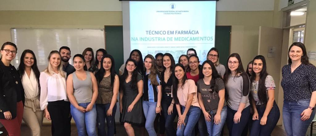 No dia 08 de novembro de 2019, os alunos do segundo semestre do Curso Técnico em Farmácia participaram da palestra intitulada “Técnico em Farmácia na Indústria de Medicamentos“. A atividade foi conduzida pela equipe do Centro de Desenvolvimento de Testes e Ensaios Farmacêuticos (CTEFAR), do Departamento de Farmácia Industrial, do Centro de Ciências da Saúde da UFSM (CCS). Os representantes foram os farmacêuticos Bruna Xavier (Supervisora Laboratório de Biológicos), Clóvis Dervil Appratto Cardoso Júnior (Analista Laboratórios Físico-Químico e de Biológicos) e Rafaela Ferreira Perobelli (Gerente da Garantia da Qualidade).