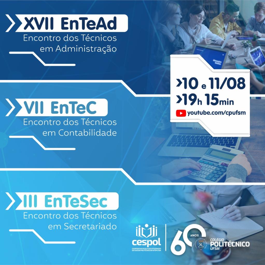 O Colégio Politécnico da UFSM promoveu, nos últimos dias 10 e 11 de agosto, o XVII Encontro dos Técnicos em Administração, o VII Encontro dos Técnicos em Contabilidade e III Encontro dos Técnicos em Secretariado. Os encontros foram realizados de forma gratuita e online, transmitidos através do Canal do YouTube do Colégio Politécnico da UFSM.