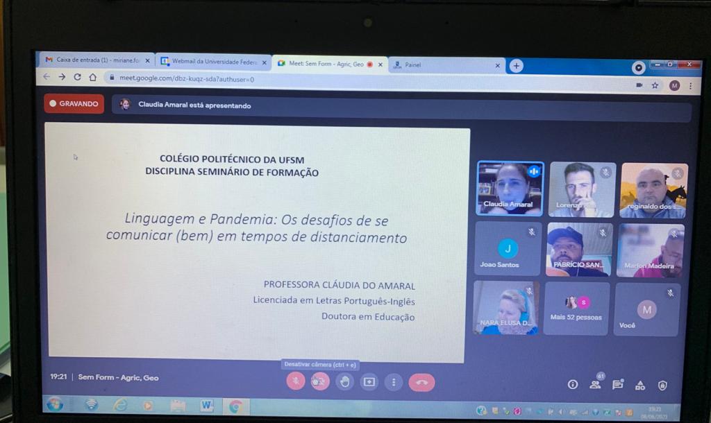 Legenda: Print de um encontro da disciplina via Meet./Arquivo: Miriane Fonseca.