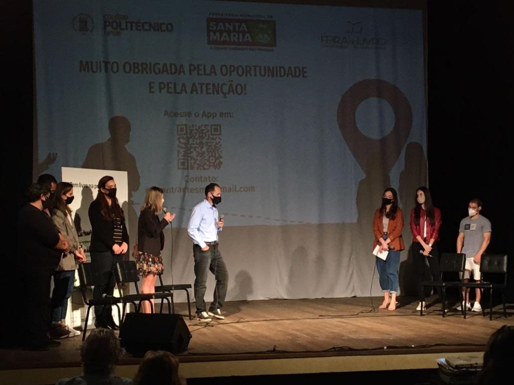 Você já se perguntou quantas esculturas estão no seu caminho no dia-a-dia? As alunas do Ensino Médio do Colégio Politécnico da UFSM Luísa Furquim e Virgínia Berguemaier transformaram esse questionamento em um aplicativo que, com o auxílio da geolocalização, aponta em um mapa a localização de cada escultura de Santa Maria. O lançamento oficial do aplicativo ocorreu no dia 5 de outubro, às 17h no Theatro Treze de Maio e fez parte da programação da 48ª Feira do Livro, que segue até 16 de outubro. O evento contou com a presença da diretora do Colégio Politécnico, Marta Von Ende, e dos professores orientadores do projeto Márcia Gerhardt e Valmir Vieira