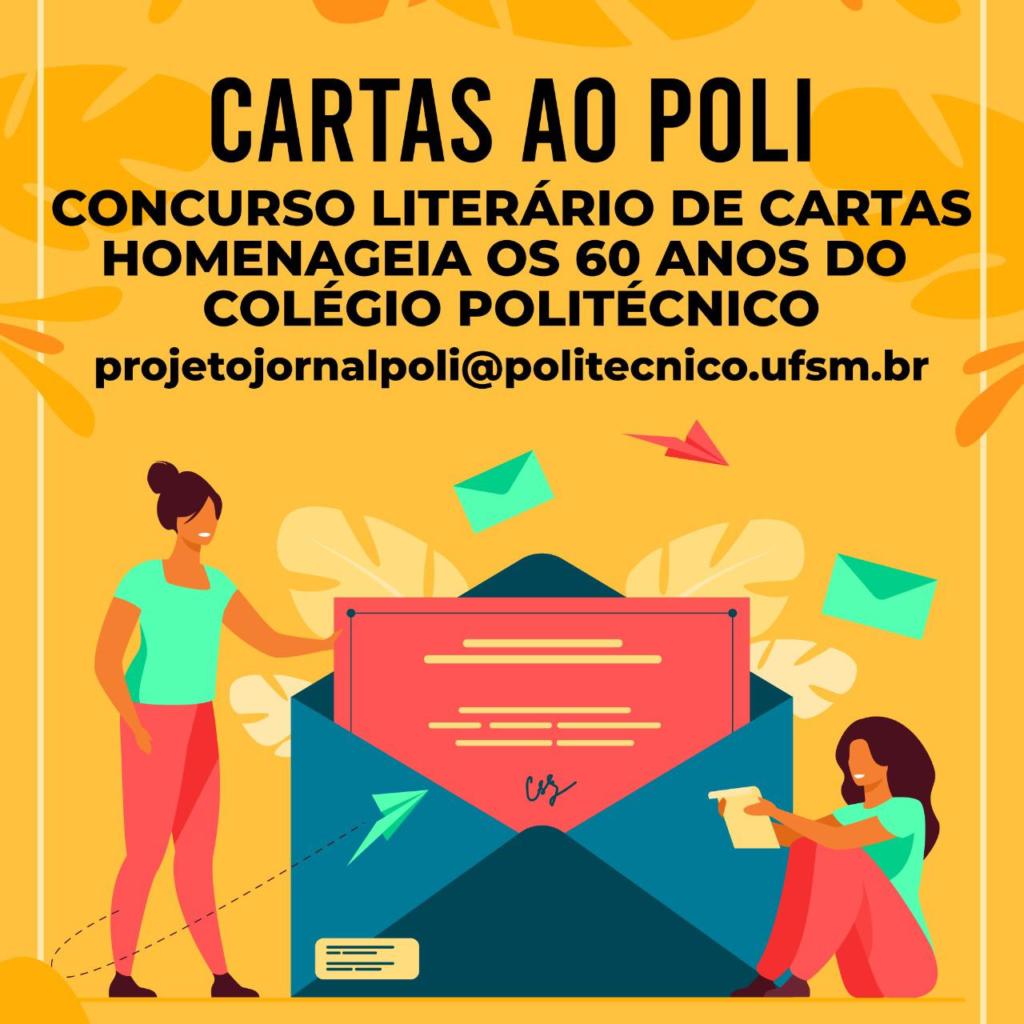 Estudantes, ex-alunos(as), servidor(a) docente ou técnico-administrativo do Colégio Politécnico da UFSM estão convidados a participar do Concurso Literário “Cartas ao Poli”, que recebe trabalhos desde segunda-feira, 18 de outubro, até o próximo dia 31.