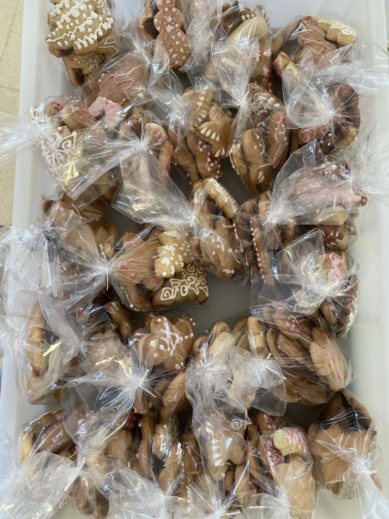 No dia 24 de novembro, as facilitadoras Profª Marlene Lovatto, Profª Magda Monego e a Bolsista Karem Rodrigues Vieira realizaram a Oficina de Biscoitos de Natal para alunos do curso Técnico em Alimentos. O evento contou com a participação síncrona de 15 estudantes e foi desenvolvido no Laboratório de Panificação, via videoconferência. Após a confecção, os biscoitos elaborados na oficina foram oferecidos para a população em situação de rua, em uma ação denominada “Café Solidário”. No dia 5 de dezembro, os biscoitos foram distribuídos para pessoas em situação de rua na Praça Saldanha Marinho.
