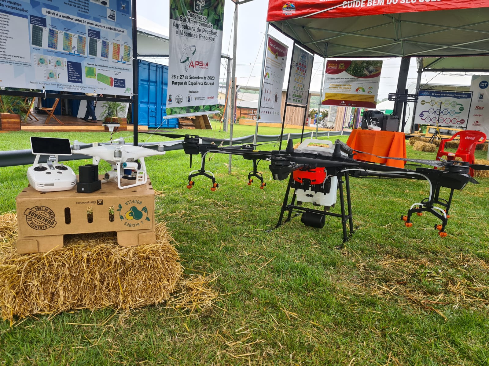 O Colégio Politécnico da UFSM foi representado na Expodireto Cotrijal 2022 por meio do Projeto Advanced Farm 360 e do Mestrado Profissional em Agricultura de Precisão. O evento, considerado uma das maiores feiras do agronegócio da América Latina, ocorreu de 07 a 11 de março de 2022, no município de Não-me-toque (RS). O Advanced Farm 360, Projeto de Desenvolvimento Institucional do Colégio Politécnico da UFSM, apresentou as tecnologias de pulverização com drones, uma de suas principais linhas de trabalho. A interação com o público foi intensa, já que a tecnologia é muito promissora e apresenta diversas vantagens quando comparada com a pulverização tradicional: por meio do uso de drones, é possível pulverizar em pontos específicos, utilizando menos insumos químicos e com alta produtividade, além da economia com mão de obra e otimização de tempo de serviço. O Mestrado Profissional em Agricultura de Precisão é um curso de pós-graduação ofertado pelo Colégio Politécnico da UFSM, que tem por objetivo qualificar profissionais para atuar em empresas ligadas ao segmento da agricultura de precisão. Durante os cinco dias de feira, o Advanced Farm 360 participou também do estande do Projeto Aquarius, também da UFSM, um dos principais projetos de agricultura de precisão do Brasil. No dia 09 de março, a iniciativa esteve presente no estande da UFSM.