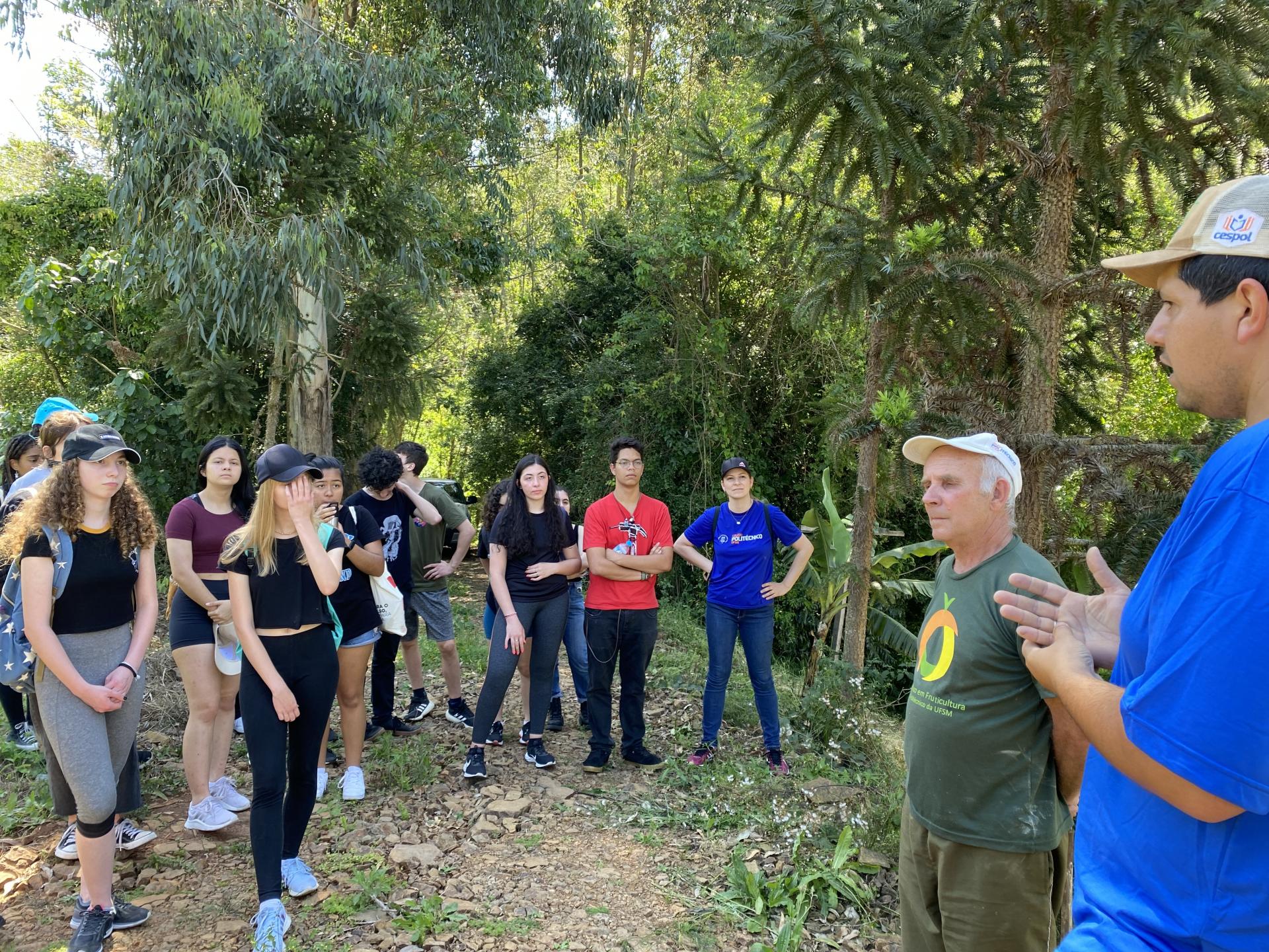 Na ocasião, os estudantes puderam apreciar a natureza ao caminhar pela propriedade, fazer trilhas entre as árvores, provar frutas como physalis, pêssego e café, conhecer a produção de diversas hortaliças e a história da mandioca biofortificada. André Raddatz, o anfitrião, recebeu a todos com muito zelo e explicou sobre os processos que utiliza em suas plantações, assim como a funcionalidade das agroflorestas que possui. A aprendizagem sobre a agroecologia e as agroflorestas foi intensa. No final da prática, Jessica Romeiro organizou uma brincadeira com a turma, para testar a atenção na atividade e os conhecimentos sobre o assunto, com um jogo de perguntas e respostas em formato de quiz.