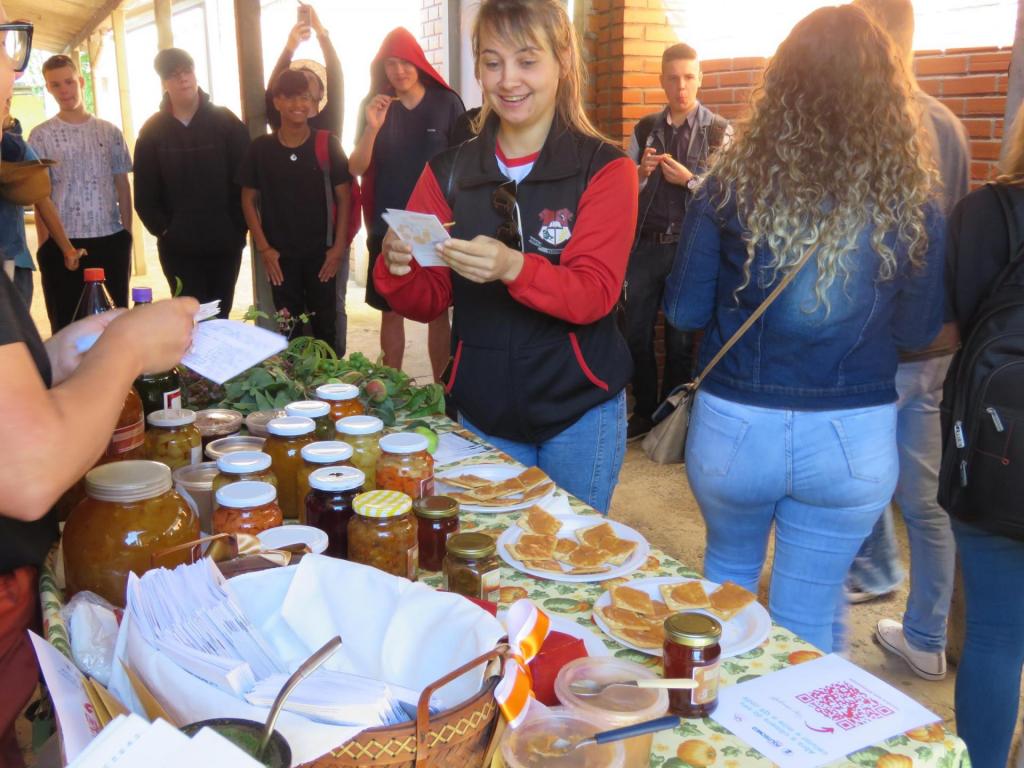 Visita ao estande do Curso Técnico em Alimentos (Foto: Cristine Michelin/Comunicação Colégio Politécnico)