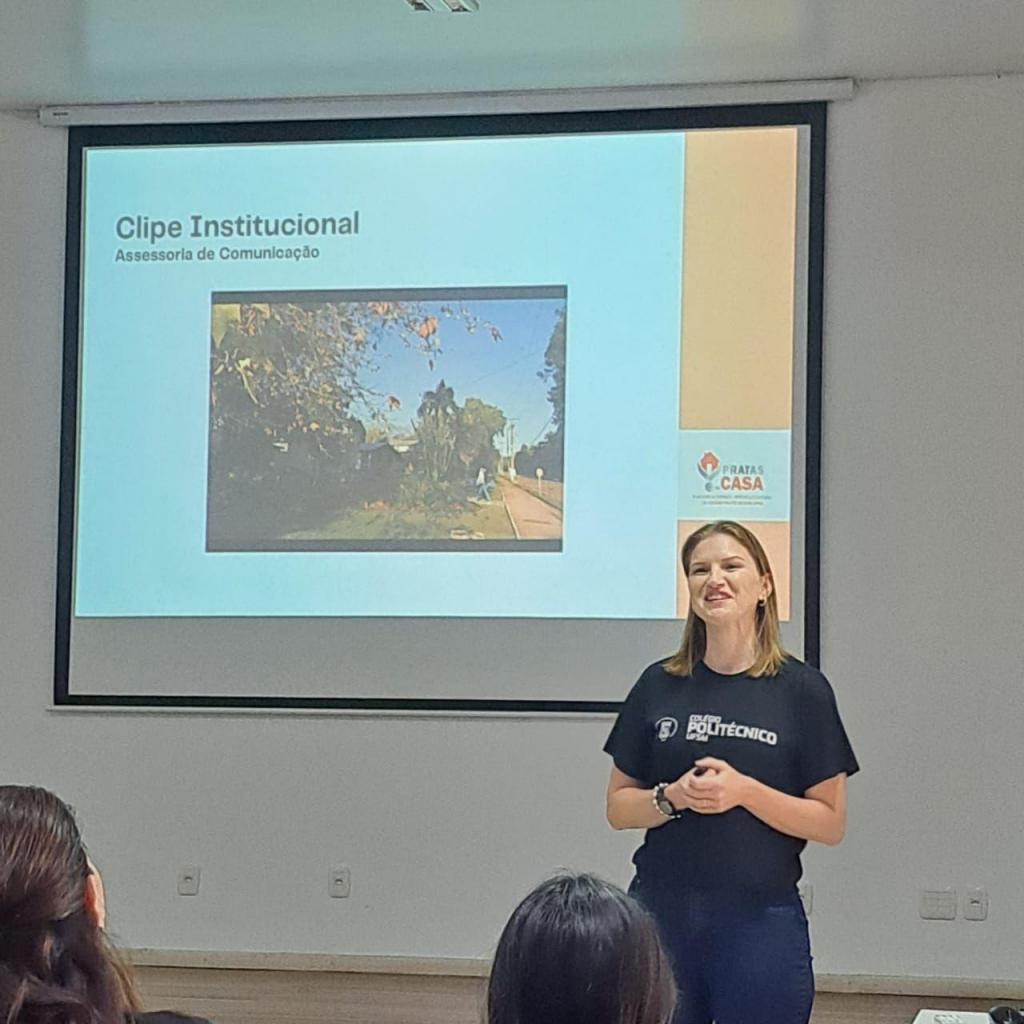 Durante a abertura do Pratas da Casa, a equipe de Assessoria de Comunicação do Colégio Politécnico, lançou o Clipe Institucional 2024, que guiará o plano comunicacional do próximo ano. O Ensino Médio, representado pela professora Márcia Lenir Gerhardt, compartilhou o desenvolvimento de um trabalho sobre arte e museus, o e-book “Carta aos Artistas”, obra que reúne textos elaborados pelos estudantes das três séries do nível de ensino.