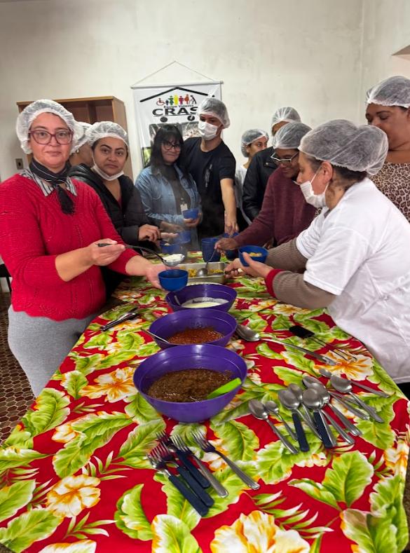 O curso “Cozinha Empreendedora: Sabores, Técnicas e Oportunidades” buscou incentivar o empreendedorismo e a valorização dos saberes locais por meio de aulas práticas e temáticas variadas. Com 52 horas de duração, realizadas no CRAS Sul de Caçapava do Sul e no Laboratório de Panificação, Frutas e Hortaliças do Colégio Politécnico da UFSM, o curso abordou catorze temáticas culinárias, entre elas geleias, doces, conservas, molhos, pães, massas artesanais e risotos, totalizando mais de cem formulações diferentes. Ministrado pelas instrutoras Gianne Pinheiro, Karem Rodrigues, Lidiane Lemos e Luciane Priebe, estudantes do curso Técnico em Alimentos, sob orientação da professora Magda Monego, o curso proporcionou uma vivência transformadora, fortalecendo o aprendizado prático, o compartilhamento de saberes e o desenvolvimento de novas oportunidades no campo da produção de alimentos e do empreendedorismo local.