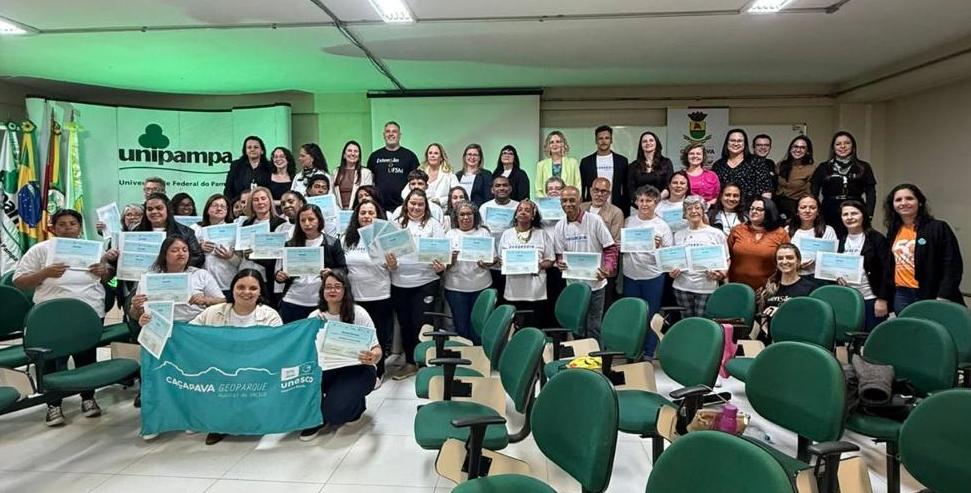A celebração da formatura ocorreu no Salão de Atos da Unipampa e contou com a presença do prefeito Marcelo Spode, da secretária de Desenvolvimento Social Cristina Spode e de sua adjunta Aline Oliveira; da coordenadora do Geoparque Caçapava Alizandra Silva; do secretário adjunto de Trabalho do Estado Tiago de Leon; do coordenador da área de Desenvolvimento Regional da UFSM Leandro Gabi; da responsável técnica pelo Progredir Geoparques na UFSM Angelita Zimmermann; e das coordenadoras dos CRAS Sul e Floresta, Eva Moreira e Letícia Neto, além de secretários municipais e vereadores.
