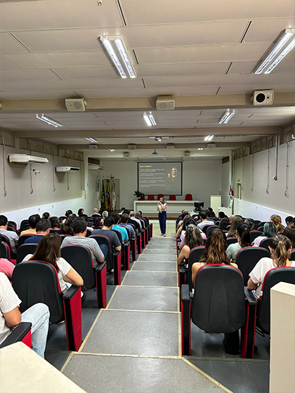 A palestra principal foi ministrada pela professora Drª Bruna Brandt, psicóloga e doutora em Administração. Com o tema “Ensinar em tempos de Inteligência Artificial: o que nos mantém humanos?”, Bruna provocou o público a pensar sobre a dualidade entre homem e máquina.