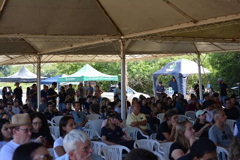 Como já de costume, o dia de campo promoveu as rotações por diferentes culturas, quando os participantes foram divididos em grupos para percorrer cinco estações temáticas, onde puderam acompanhar demonstrações práticas e interagir com especialistas. As estações abordaram a produção de arroz irrigado e o manejo sustentável de áreas de várzea, tecnologias para as culturas da soja e do milho, agricultura digital e de precisão, além de inovações tecnológicas voltadas ao setor agropecuário. As atividades proporcionaram troca de experiências e contato direto com soluções que atendem às demandas reais dos produtores.