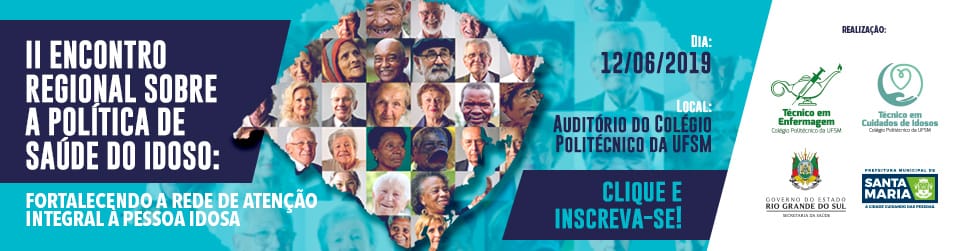 Promovido pelos cursos técnicos em Enfermagem e em Cuidados de Idosos do Colégio Politécnico, o II Encontro Regional sobre a Política de Saúde da Pessoa Idosa deve ocorrer no dia 12 de junho no Anfiteatro do Colégio Politécnico. A edição de 2019 do evento será desenvolvida com o tema “Fortalecendo a rede de atenção integral à pessoa idosa”, contando com as falas de diferentes profissionais e representantes de órgãos da área da saúde e da assistência social.