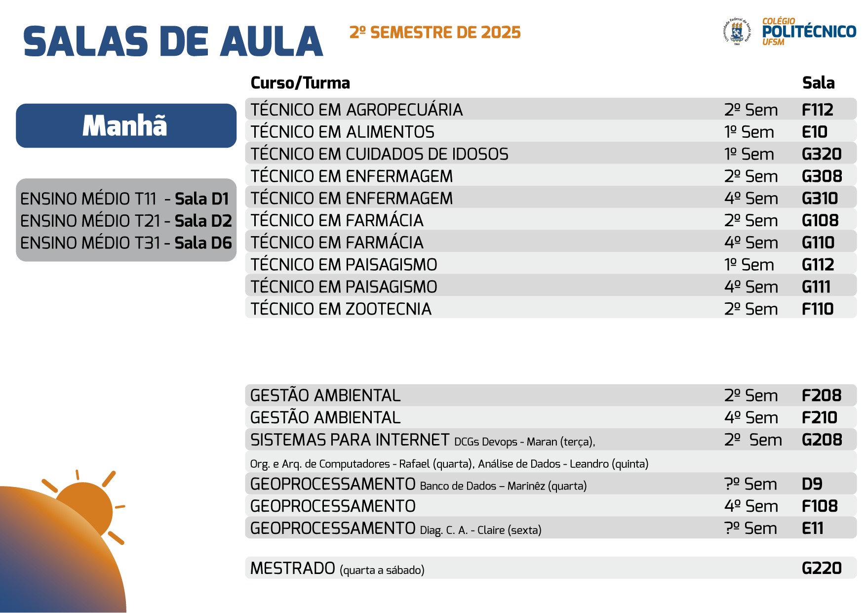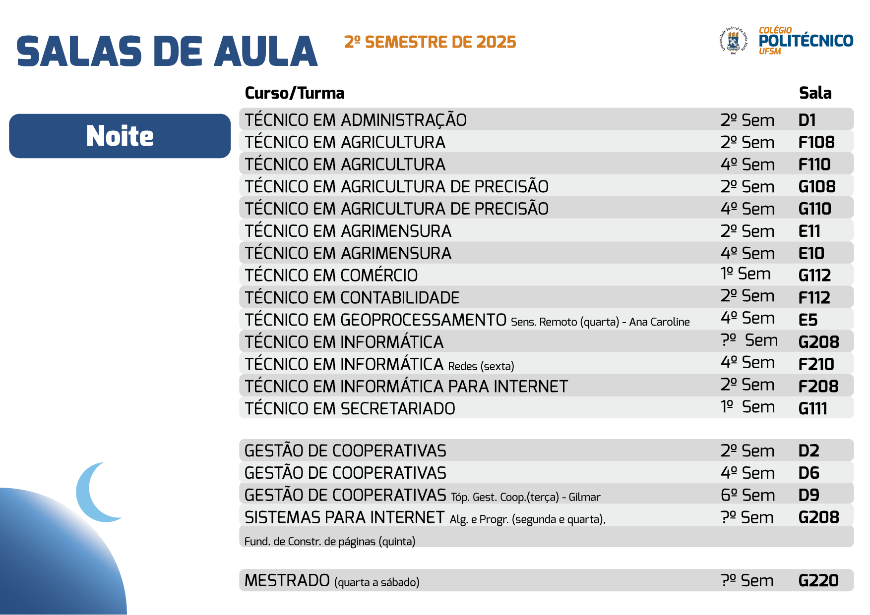 Salas de aula – 2º Semestre de 2025